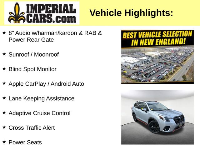 Discover the Subaru Forester Sport - a versatile and capable SUV that seamlessly blends performance, technology, and style. With its impressive 2.5L 4-cylinder DOHC 16V engine, Lineartronic CVT, and standard Symmetrical All-Wheel Drive, this Forester Sport delivers a dynamic and responsive driving experience, while achieving an exceptional 26 city / 33 highway MPG.