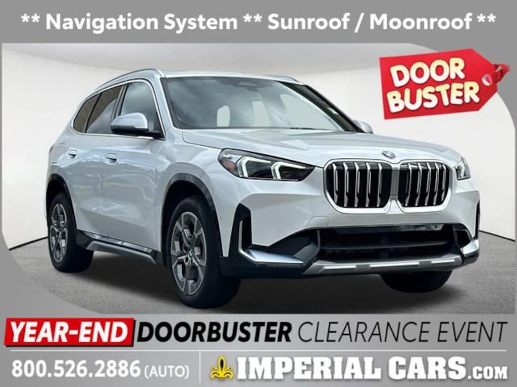 Navigation System, Sunroof / Moonroof, Blind Spot Monitor, Lane Keeping Assistance, Apple CarPlay / Android Auto, Power Seats, Heated Seats, Backup Camera, Bluetooth, Cruise Control, Power Windows, Power Locks, Steering Wheels Radio Controls, Aluminum Wheels, Luggage Rack, Auto-Dimming Interior & Exterior Mirrors, Auto-Dimming Rear-View Mirror, BMW Digital Key Plus w/UWB, Comfort Access Keyless Entry, Convenience Content 1, Convenience Package, Navigation, Navigation System, Panoramic Moonroof, Wireless Device Charging. Alpine White 2024 BMW X1 xDrive28i 4D Sport Utility xDrive28i AWD 7-Speed AutomaticClean CARFAX. CARFAX One-Owner. 2.0L 4-Cylinder DOHC 16V TwinPower Turbo 25/34 City/Highway MPG Odometer is 7109 miles below market average!MORE ABOUT US: Imperial Cars Purchase With Confidence: 1) Free Car Fax Vehicle History Report available for all our vehicles online. 2) Our vehicles are Imperial Certified and go through a rigorous Multi-Point vehicle inspection. 3) Bottom line pricing. 4) 5-Day or 200 Mile Vehicle Exchange Program for your total confidence. If you are not happy with it bring it back within 7 days or 200 miles and we'll give you a credit of your full purchase price toward the purchase of another vehicle. (Excludes Renewed for You vehicles.)Please be aware that the price listed for the vehicle does not include tax, title, registration, documentation fee, or any other applicable fees. However, it does include a trade-in assistance bonus of $1,000 for qualifying retailable trades with less than 10 years of use from the original in-service date. To be eligible for the advertised promotional price, you must pay in full and take delivery of the vehicle from dealer stock on the same day. For the most up-to-date information and Imperial discounts, please call or email our phone and internet team. Please note that the price cannot be combined with any other discounts or promotions and is subject to change based on the market value at any time without notice. To receive the internet special discount, please mention the promo code INTERNET1. While we strive to provide reliable information, please note that the dealer is not responsible for any misprints involving the price and/or description of any vehicle offered for sale. It is your sole responsibility to inspect and verify such information before making a purchase. We want to be transparent in our dealings, and to that end, you can call 800-526-AUTO (2886) to receive your personalized Buy-For-Price. Lastly, please note that we do not sell to wholesalers or dealers, and some of our pre-owned vehicles may be subject to unrepaired safety recalls. To check if any vehicle has unrepaired recalls, you can look up the vehicle's VIN at https://www.nhtsa.gov/recalls.