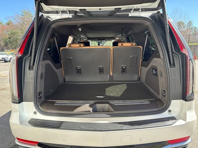 The attention to detail is evident in every aspect of this Escalade ESV Premium. From the elegant Crystal White Tricoat exterior to the luxurious Brandy leather interior with faceted quilting, this SUV exudes a sense of sophistication and refinement. The Touring Package further enhances the experience with features like soft-close doors and illuminating sill plates, while the Performance Package ensures exceptional towing capabilities and handling.