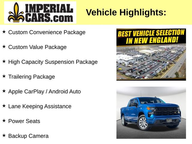 The Custom Convenience Package, Custom Value Package, High Capacity Suspension Package, and Trailering Package further enhance the Silverado's capabilities, with standout features like the Electric Rear-Window Defogger, EZ Lift Power Lock & Release Tailgate, Remote Vehicle Starter System, LED Cargo Area Lighting, and Hitch Guidance.