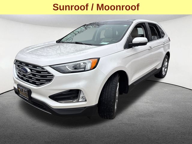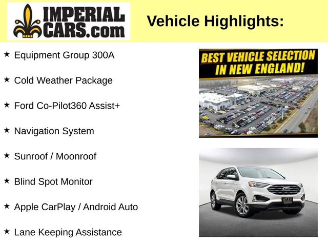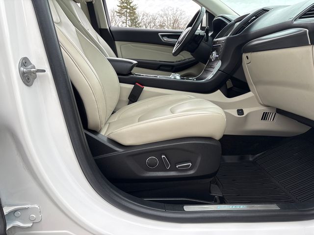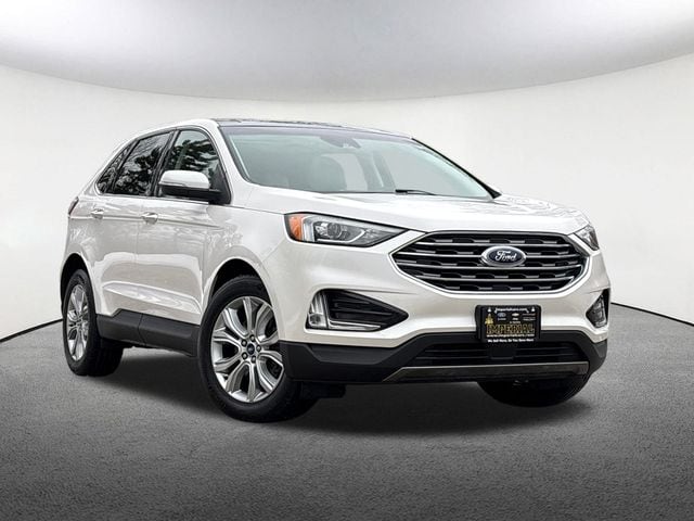 Boasting a striking White Platinum Metallic Tri-Coat exterior, this Edge Titanium commands attention with its sleek and modern design. Beneath the hood, the turbocharged 2.0L EcoBoost engine delivers a thrilling 8-speed automatic AWD powertrain, providing the perfect balance of efficiency and power. With an EPA-estimated 21 city / 28 highway MPG, this Edge Titanium is both economical and exhilarating to drive.