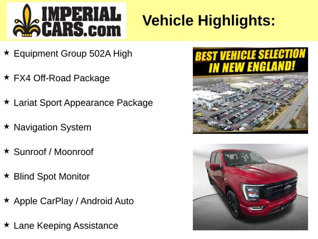 Don't miss your chance to make this exceptional F-150 Lariat your own. Visit our showroom today and let our knowledgeable sales team guide you through all the features and benefits this remarkable truck has to offer. We're confident you'll be impressed by the exceptional value and uncompromising performance of this Ford F-150 Lariat.Price does not include tax, title, registration, documentation fee or other applicable fees, and includes our Imperial Trade Assistance Bonus of $1,000 for qualifying 2010 or newer retailable trades. To receive advertised price, the vehicle must be paid in full and take same day delivery. Not responsible for any typographical or pricing errors. Internet price cannot be combined with any other discounts or promotions and is available exclusively through our phone and internet department. Call 800-526-AUTO (2886) to speak with our internet team. Stock photos may be used and picture may not reflect actual vehicle. NO WHOLESALERS OR DEALERS.