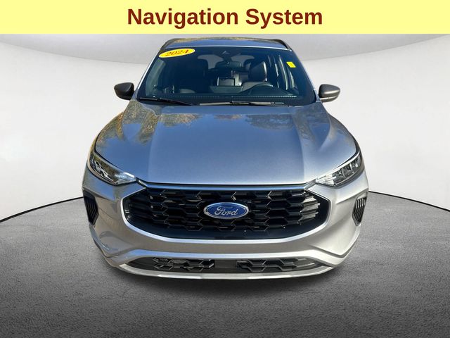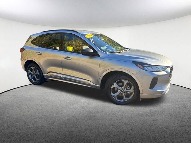 Navigation System, Blind Spot Monitor, Lane Keeping Assistance, Apple CarPlay / Android Auto, Adaptive Cruise Control, Cross Traffic Alert, Power Seats, Heated Seats, Backup Camera, Bluetooth, Cruise Control, Power Windows, Power Locks, Steering Wheel Radio Controls, Aluminum Wheels, AWD, Adaptive Cruise Control w/Stop-and-Go, Cold Weather Package, Connected Navigation, Equipment Group 300A, Ford Co-Pilot360 Assist+, Heated Front Row Seats, Heated Sideview Mirrors, Heated Steering Wheel, Rear Parking Sensor, Rear-View Camera, Remote Starter System, Speed Sign Recognition, SYNC 4 w/Enhanced Voice Recognition, Tech Pack #1. Iconic Silver Metallic 2024 Ford Escape ST-Line ST-Line 4D Sport Utility 1.5L EcoBoost AWD 8-Speed Automatic