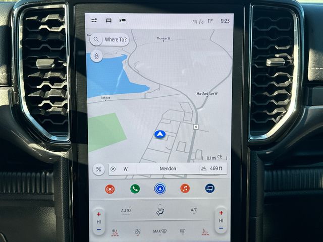 Step inside the Ranger Lariat and experience the pinnacle of comfort and convenience. The Connected Navigation system keeps you connected and on course, while the premium B&O Sound System by Bang & Olufsen delivers an immersive audio experience. Dual-zone automatic climate control, a heated steering wheel, and leather-trimmed front heated bucket seats ensure you and your passengers travel in absolute comfort.